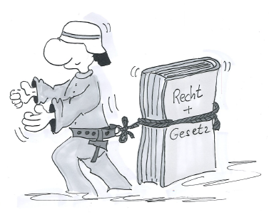 In einer bebilderten Geschichte werden die Teilnehmenden mit rechtlichen Fragen des Einsatzdienstes konfrontiert.