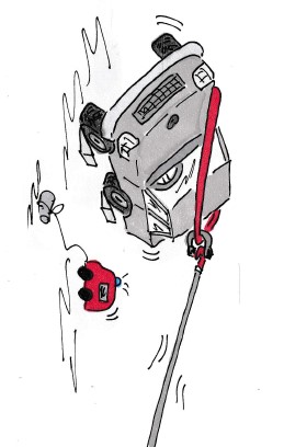 Die Methode "Sanfte Landung" ist eine Teamaufgabe. Nur mit den Gerätschaften für die technische Hilfe wird von der Gruppe ein Auto sanft auf die Seite gelegt und sanft wieder zurück auf die Räder gebracht.