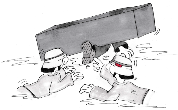 Die Methode Kanister ins Ziel ist eine Teamaufgabe mit einer Herausforderungssituation die mittels Rettungszylindern und dem Spreizer zu lösen ist.